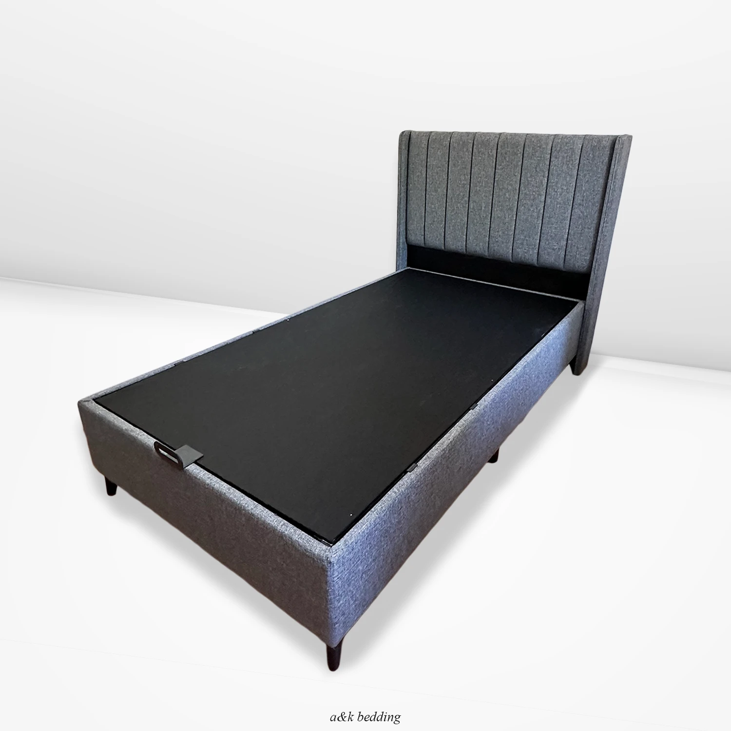 120×200 Gri Keten Kumaş Bir Buçuk Kişilik Baza Ortopedik Yatak Seti